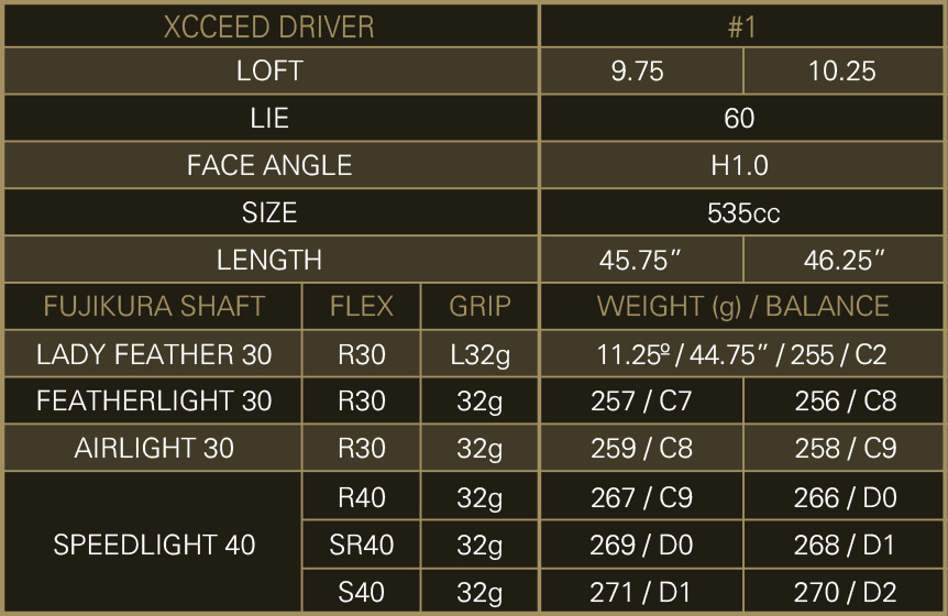 according to each golfer’s clubhead speed. The XCCEED